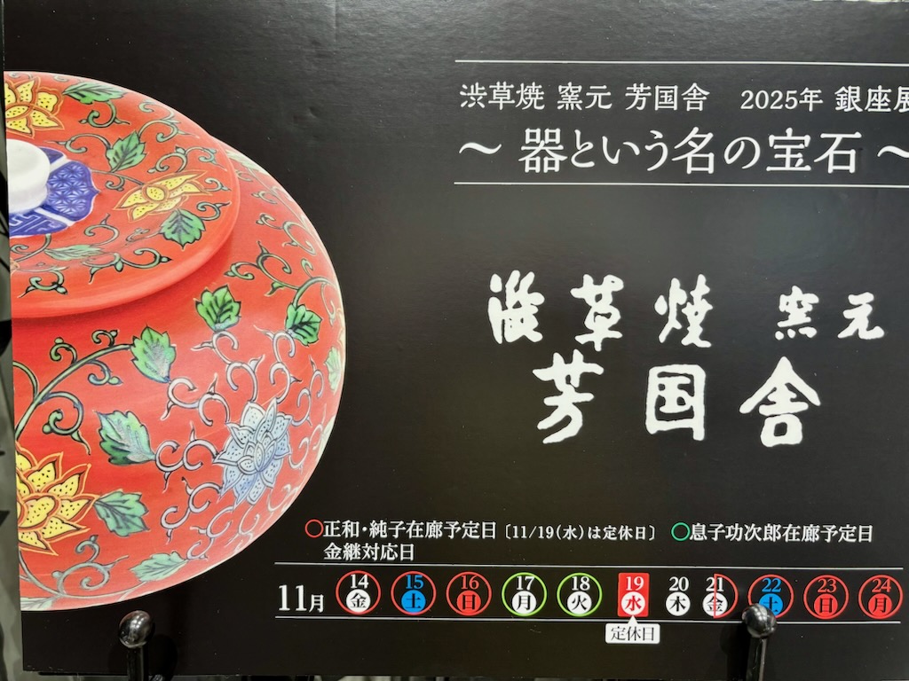 2025年11月14日 ぎゃらりぃ 渋草焼 窯元 芳国舎 ~器という名の宝石~ 開催中 渋草焼 窯元 芳国舎 2025年銀座展 ~器という名の宝石~ 11月14日(金)~11月24日(月)※水曜定休 11:00~17:00 ※在廊日 20日・21日午前中は不在です。